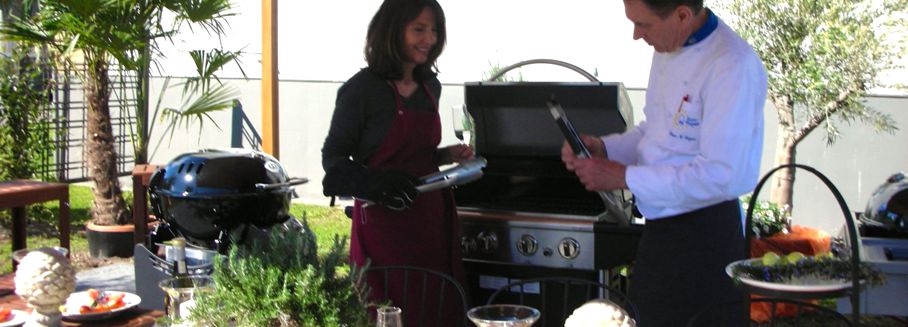 Alle Barbecue-Kochkurse finden auf der Terrasse von Cook & Live statt.